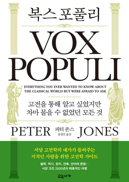 2000년이 넘도록 이러한 사상들은 서양에 대한 상상력을 자극했고, 또 우리가 세상에 대해 생각하는 방식에 중요한 역할을 해왔다. 『복스 포풀리―고전을 통해 알고 싶었지만 차마 물을 수 없었던 모든 것』에서는 철학, 역사, 건축, 언어, 문법, 정치 등에 이르기까지 모든 것을 아우르고 있으며, 고대 그리스인과 로마인들의 놀라운 지적·정치적·문학적 업적 또한 확인할 수 있다.
