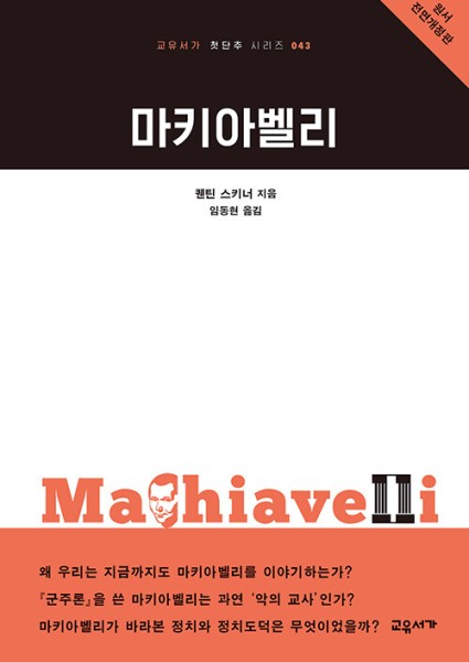 교유서가 첫단추 시리즈 43권. 저자인 스키너는 마키아벨리를 향한 전통적인 평가에 이의를 제기하며 마키아벨리라는 인물을 구성하는 네 개의 상(像), 즉 “외교관” “군주의 조언자” “자유의 이론가” “피렌체의 역사가”라는 상을 제시한 후, 각각의 맥락에 대한 재구성을 시도한다.